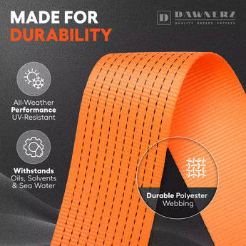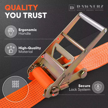 Before using Dawnerz Ratchet Straps, read and understand all product warnings and instructions provided by the manufacturer. Always follow DOT (Department of Transportation), FMCSA (Federal Motor Carrier Safety Administration), WSTDA (Web Sling & Tie Down Association), and all other applicable industry regulations to ensure the safe and proper use of ratchet straps for securing loads during transportation.